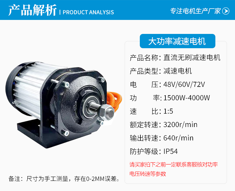 133系列永磁直流無(wú)刷電機(jī)中置減速電壓48v 60v 72v 電機(jī)功率1200w1500w1800w2200w